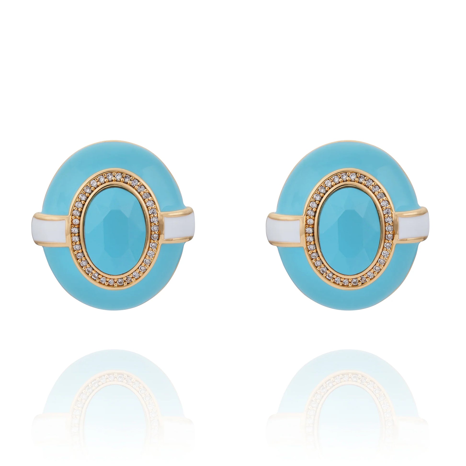 The Duomo Turquoise Crystal Earrings embody a refined fusion of classic shape and modern elegance. Featuring a vibrant turquoise crystal framed by pavé-set cubic zirconia and glossy enamel accents, this oval design evokes timeless sophistication with a fresh twist. Perfect for adding a pop of color to day-to-night looks.