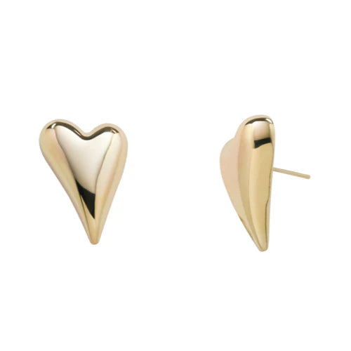 Sculpted in radiant gold with an asymmetrical twist, these earrings celebrate the beauty of imperfection and individuality. A bold expression of love with a touch of edge.